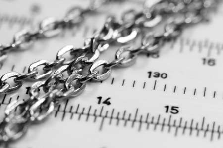 Sure, here is the sentence rephrased: Close-up of black metal chain links, featuring high contrast, embodying concepts of strength and connectivity