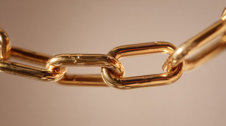 This image captures a detailed view of a gold chain link, highlighting its smooth surface and striking shine, perfect for discussing themes of luxury and connection.