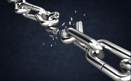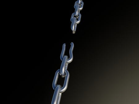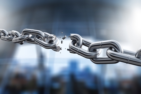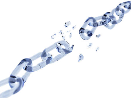 View of a Weak link of a Broken chain exploding - 3d render