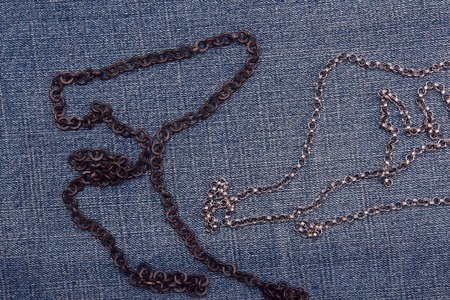 different metal chain on denim