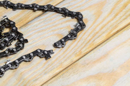 The straight chain is lying on a wooden table
