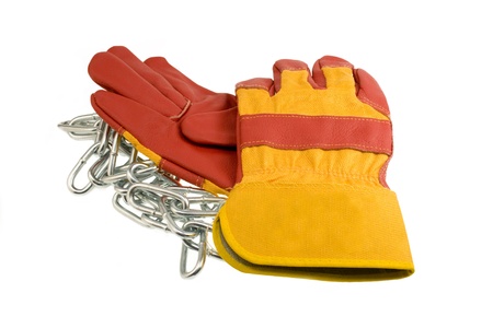 Red protective gloves with steel chain