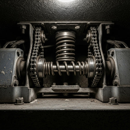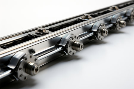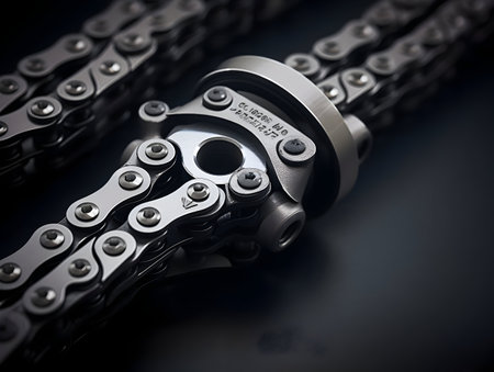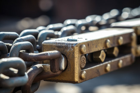 Industrial Metal Chain Mechanism Close-Up Showing Engineering Detail And Heavy Equipment Structure