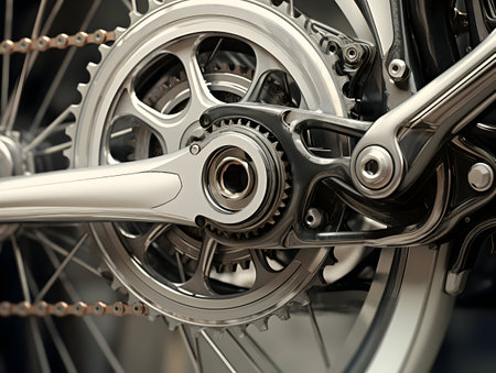 close-up of gears and chains on a partially assembled bike, created with generative ai