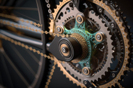 close-up of cross bikes intricate gearing system, with chain in motion, created with generative ai