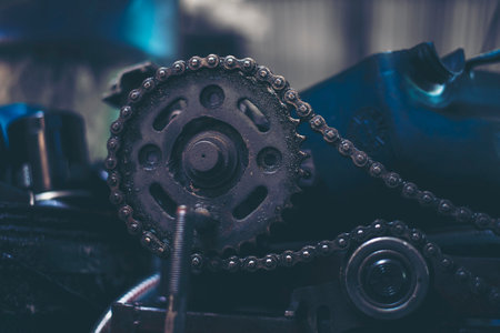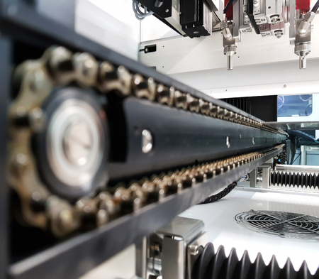 Close up of chain gears, electronic machinery and equipment