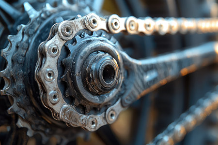 Detailed view of bicycle chain and gears, emphasizing mechanical components for summer olympic games