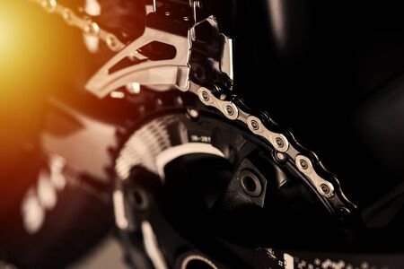 Bicycle chain and gears close up mechanical details for summer olympic games sport