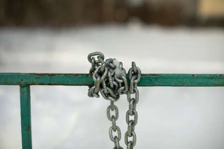 Metal chains on a city street. Fence.