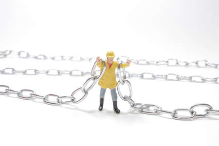 Muscular man breaking free from chains restraint