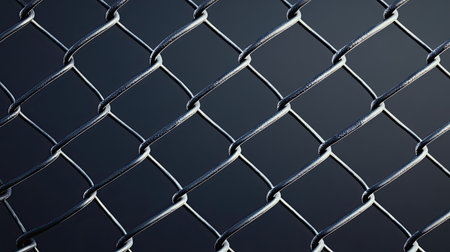 A detailed close-up of a metallic chain link fence, showcasing its intricate texture and design. The image emphasizes security and durability with a modern appeal.