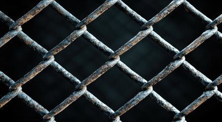 Close-up texture of steel chain-link fence with blurred background, representing security and restriction