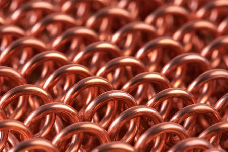 Macro view of spiral copper wire as abstract metal and energy industry