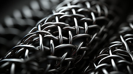 Captivating monochrome chain intricately woven into a metallic mesh, evoking a sense of mesmerizing entrapment and edgy elegance