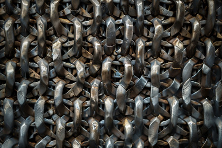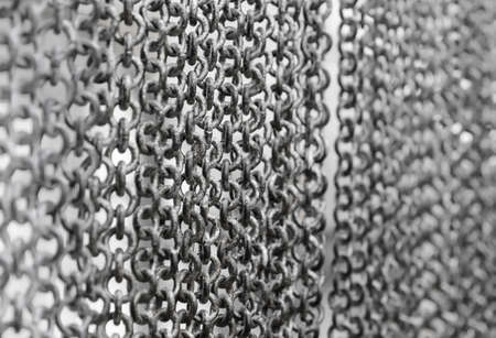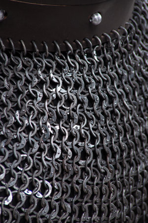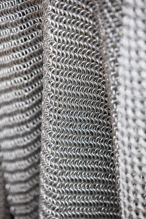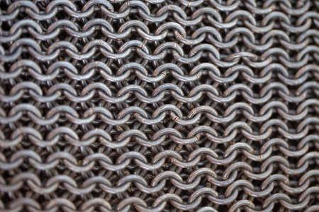Interlocking Metal Rings Chainmail Texture. Medieval armor detail showcasing connected iron links.