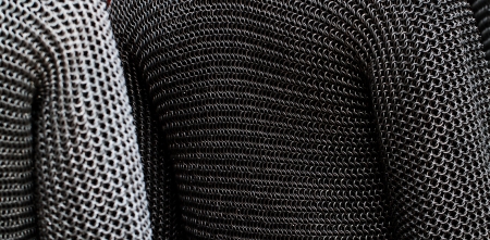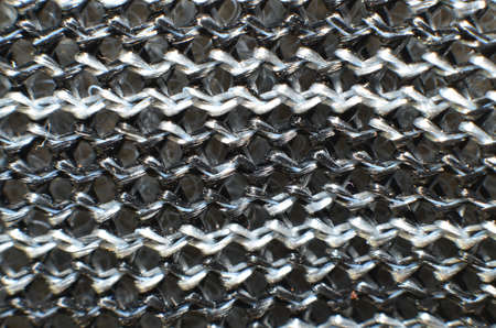 Interlocking metal loops tightly knit together creating a strong and durable texture in this silver metallic mesh fabric