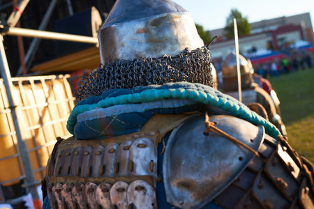 Close up of middle ages armor of the knight. Historic armoring used in combat battles.