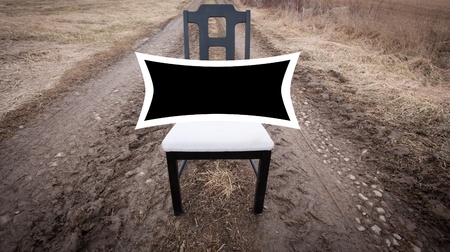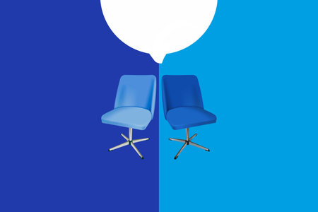 Two chairs with speech bubble on the blue background. Vector illustration.