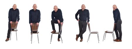 Wooden chair arranged with armchairs. Minimal lifestyle concept. Pattern.