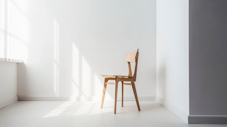 A single wooden chair is bathed in natural light, creating a warm atmosphere in a vintage room.