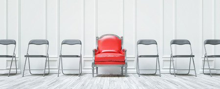 3d rendering design. keep spaced between chairs make separate on white background for social distancing concept. White and red chairs far apart. Prevention Coronavirus disease (COVID-19), healthcare.