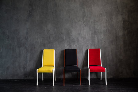 Trendy interior decor with multi-colored plastic chairs and tables, focusing on functionality and style. AI generated.