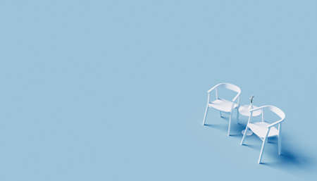 Chair in the room - Minimalism blue and white color background - 3D rendering
