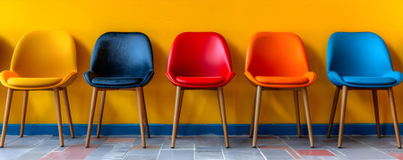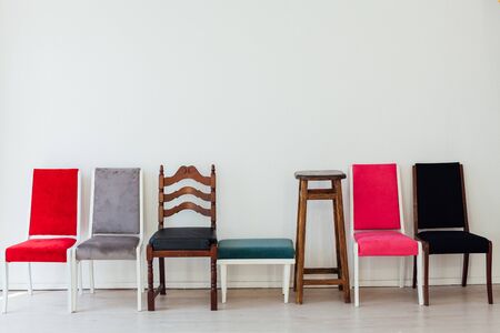 Row of colorful chairs. Interior trendy design concept.