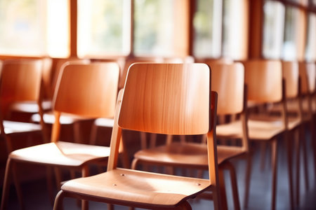 Empty Wooden Chairs in Classroom Setting
