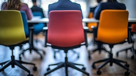 Close up of empty chairs in a meeting room. Blurred background.