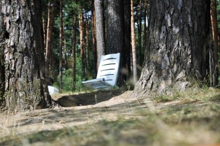 beach chair standing in the trees