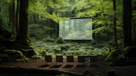 Cinema in Forest Glade Tree Frame Whispering Leaves