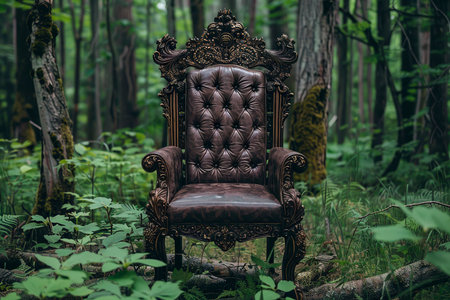 A chair sits in the middle of a forest, AI