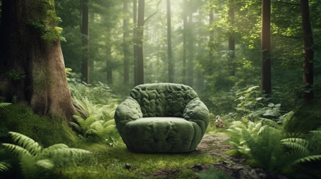 Soft chair in the forest. Generative AI
