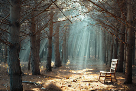 chair in the morning fog in the forest, beautiful photo digital picture