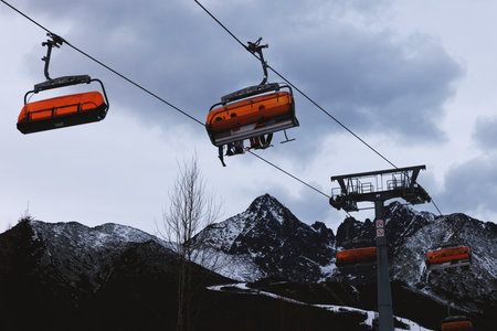 Ski lift at mountain resort. winter holidays