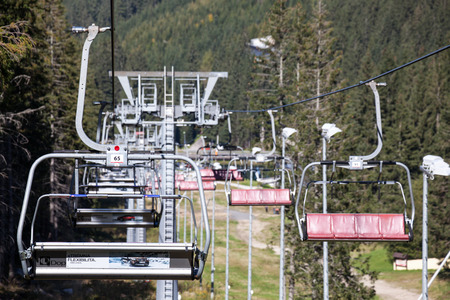 JASNA, SLOVAKIA - SEPTEMBER 30: Empty ropeway at Low Tatras mountains on September 30, 2014 in Jasna