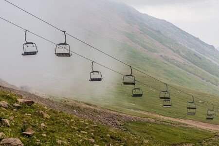 empty skilift in the fog in winter