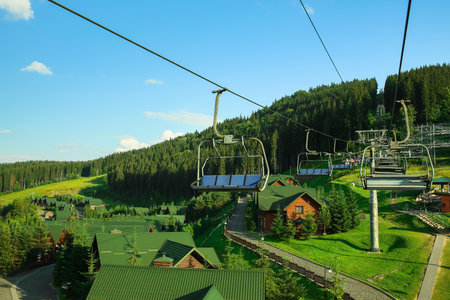 View of cable cars in Carpathian mountains, Ukraine