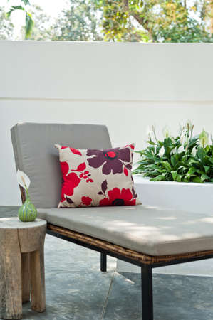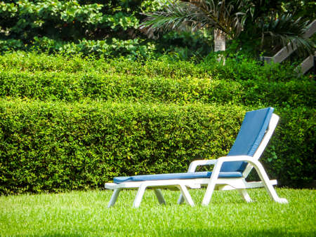 Villa garden with Sunlounger in the beautiful afternoon sun