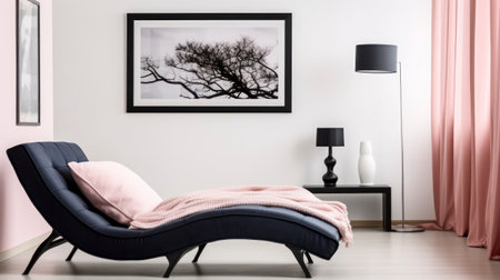 the chaise lounge, a sleek and modern piece of furniture, is showcased in a minimalist setting, its textured details beautifully captured against a soft, studio-lit background, evoking a sense of serenity and comfort, perfect for interior design and home decor inspiration, photographed with a canon m50 camera. ai generated