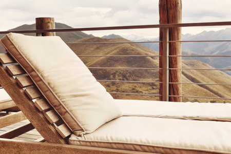 modern relaxation space with lounge chairs and forest view, serene escape concept