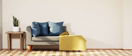 3D render of Home interior with ethnic boho decoration. Modern living room in house.