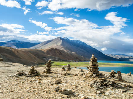beautiful mountain landscape and blue sky with clouds in Indian Himalayas, Ladakh region