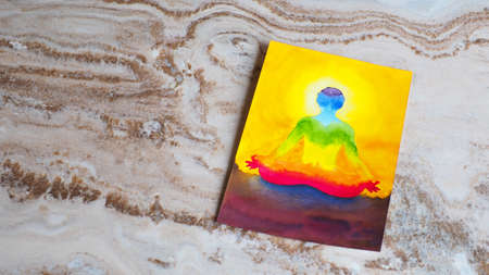 chakra human lotus pose yoga abstract mind mental power watercolor painting illustration design hand drawing selected focus