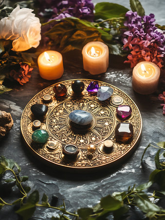 Magic crystals, spiritual esoteric practice for relax and meditation