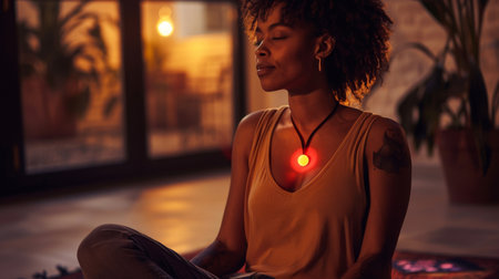 Chakra Meditation: Woman Aligning Energy Centers in Serene Atmosphere