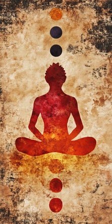 A mystical illustration of a person meditating with their chakras glowing in vibrant colors, symbolizing inner balance and harmony.
