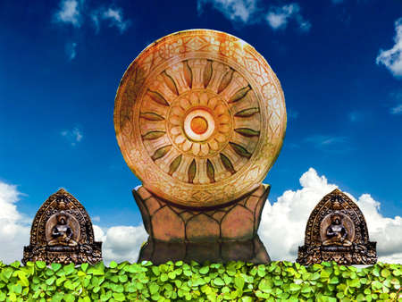 Wheel of truth Dharmachakra in the park