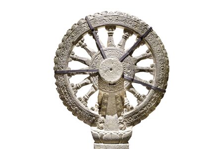 Chariot wheel with eight spokes with a central medallion. The medallions on the wheel spokes are richly carved depicting numerous deities and erotic and amorous figures in various poses. Konark Sun Temple, Orissa India. 13th Century AD.
